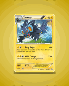 Luxray from the Flashfire set is a Rare card boasting 140 HP. This striking Pokémon features the powerful attack Wild Charge, making it a notable addition to any collection. Its vibrant design and solid stats highlight its dynamic presence in the set.