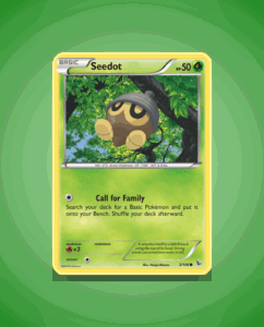 Seedot is a Common Pokémon from the Flashfire set, numbered 5. It has 50 HP and features the attack Call for Family. This card offers a straightforward addition to any collection.