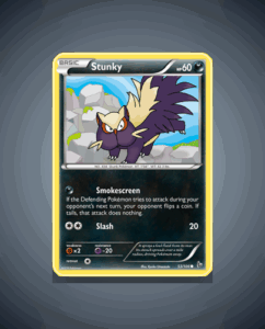 Stunky is a common Pokémon card from the Flashfire set, numbered 53. It has 60 HP and features the attack Slash. This straightforward card offers a solid addition for collectors focusing on the Flashfire series.