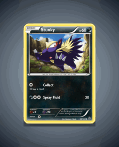 Stunky from the Flashfire set is a common Pokémon card numbered 54. It has a modest 60 HP and features the attack Spray Fluid. This card offers a straightforward addition to any collection.