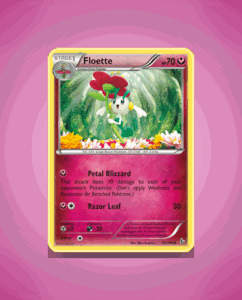 Floette from the Flashfire set is an uncommon card numbered 65. It has 70 HP and features the attack Razor Leaf. This card offers a straightforward yet charming addition to any collection.