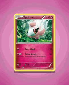 Spritzee is a Common Pokémon card from the Flashfire set, numbered 67. It has 50 HP and features the attack Fickle Attack. This card offers a straightforward addition to any collection.