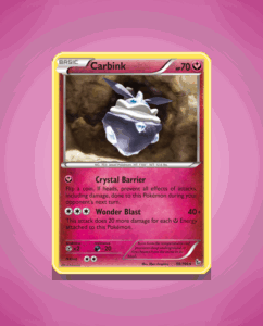 Carbink from the Flashfire set is a Rare Holo card numbered 68. This Pokémon has 70 HP and features the attack Wonder Blast. Its elegant design captures the gem-like qualities of Carbink.