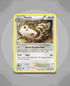 Furret from the Flashfire set is a rare card numbered 82 with 90 HP. This agile Pokémon features the straightforward attack Slam. Its clean design captures Furret’s sleek, elongated form. Collectors will appreciate its balanced stats and classic appeal.