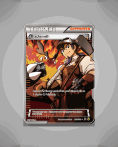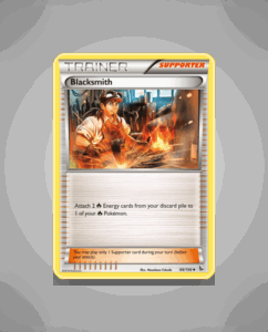 Blacksmith is an Uncommon Trainer card from the Flashfire set, numbered 88. This card features artwork that captures the intense atmosphere of a forge. Its design complements the fiery theme of the set without any special abilities or attacks.