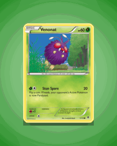 Venonat from the Phantom Forces set is a common Pokémon card numbered 1. It has 60 HP and features the attack Stun Spore. This card offers a straightforward addition to any collection.