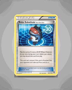 Robo Substitute Team Flare Gear is an uncommon card from the Phantom Forces set, numbered 102. This intriguing card adds a unique element to any collection with its distinctive design. Its place within the set highlights the creative themes explored in Phantom Forces.