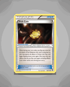 Trick Coin is an Uncommon card from the Phantom Forces set, numbered 108. Its design and role add a unique element to the collection. This card is a notable piece for enthusiasts exploring the Phantom Forces lineup.