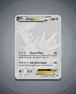 Dialga-EX from the Phantom Forces set is a Rare Secret card numbered 122. It boasts a solid 180 HP, making it a durable choice in battle. Its standout attack, Full Metal Impact, offers a strategic edge for players. This card combines strength and rarity in…