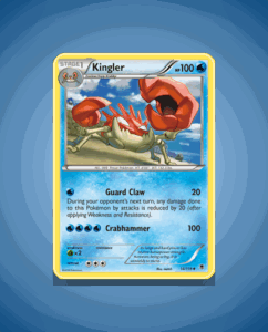 Kingler from the Phantom Forces set is an Uncommon card with 100 HP. This sturdy Pokémon features the powerful attack Crabhammer. It is card number 14 in the set.