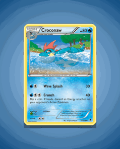 Croconaw from the Phantom Forces set is an uncommon Pokémon card with 80 HP. It features a sharp attack called Crunch, reflecting its fierce nature. This card is numbered 16 in the set, making it a distinctive addition for collectors.