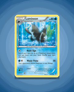 Lumineon from the Phantom Forces set is an uncommon card with 80 HP. This sleek Water-type features the attack Water Pulse, adding a splash of strategy to your deck. Numbered 19, it offers a balanced option for collectors and players alike.