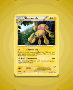 Galvantula from the Phantom Forces set is a Rare card with 80 HP. It features the striking attack Electroweb, showcasing its electric prowess. This card holds a unique spot as number 27 in the set.