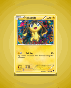 Helioptile from the Phantom Forces set is a common card numbered 28 with 60 HP. This energetic Pokémon features the attack Tail Rap. Its straightforward design makes it a solid addition for collectors focusing on this set.