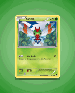 Yanma is a common Pokémon card from the Phantom Forces set, numbered 3. It features 70 HP and a single attack called Air Slash. This card offers a straightforward addition to any collection with its simple yet vivid design.