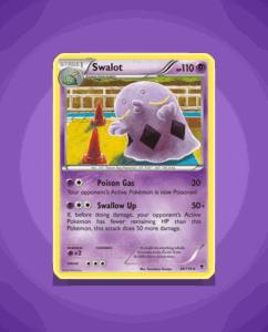 Swalot from the Phantom Forces set is a rare card boasting 110 HP. It features the distinctive attack Swallow Up, adding a strategic element to gameplay. This card holds a unique place as number 38 in the set.