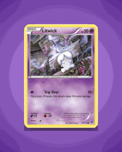 Litwick is a common Pokémon card from the Phantom Forces set, numbered 41. It has a modest 50 HP and features the attack Trip Over. This card offers a straightforward addition to any collection.