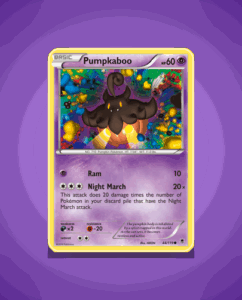 Pumpkaboo is a Common Pokémon card from the Phantom Forces set, numbered 44. It has 60 HP and features the attack Night March. This card offers a straightforward addition to any collection with its modest stats and distinctive design.