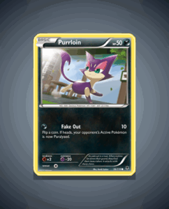 Purrloin is a Common Pokémon card from the Phantom Forces set, numbered 56. It has 50 HP and features the attack Fake Out. This card offers a straightforward addition to any collection.