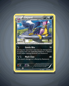 Liepard from the Phantom Forces set is an uncommon card boasting 90 HP. This sleek Pokémon features the attack Mach Claw, adding a dynamic edge to gameplay. It is card number 57 in the set.