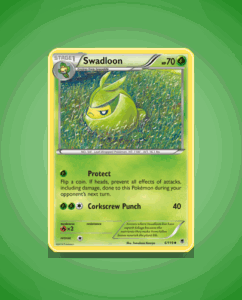 Swadloon is an Uncommon Pokémon card from the Phantom Forces set, numbered 6. It has 70 HP and features the attack Corkscrew Punch. This card offers a straightforward yet engaging addition to any collection.