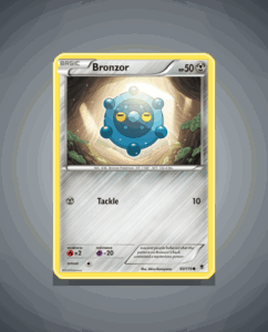 Bronzor is a Common Pokémon card from the Phantom Forces set, numbered 60. It has 50 HP and features the straightforward attack Tackle. This modest card offers a simple yet classic addition to any collection.