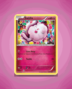 Swirlix is a common Pokémon card from the Phantom Forces set, numbered 68. It has 60 HP and features the straightforward attack Tackle. This charming card offers a simple yet appealing addition to any collection.