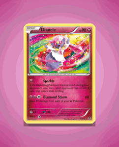 Diancie from the Phantom Forces set is a Rare Holo card numbered 71. It features a sleek design with 90 HP and a striking attack called Diamond Storm. This card offers a vibrant addition to any collection.