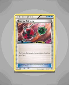 Energy Retrieval is an uncommon Trainer card from the vibrant Primal Clash set. Numbered 126, this card offers strategic value by allowing players to recover vital Energy cards. Its practical design makes it a steady choice for energy management in battle.