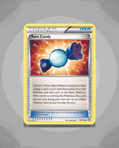 Rare Candy is an uncommon card from the Primal Clash set, numbered 135. Its straightforward design makes it a recognizable staple for many collectors. Despite lacking attacks or abilities, its role in gameplay remains valuable. This card adds a classic touch to any collection.