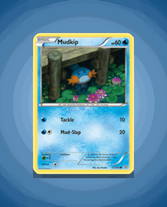 Mudkip from the Primal Clash set is a common card numbered 33. It has a modest 60 HP and features the attack Mud-Slap. This straightforward design makes it a recognizable choice for collectors.