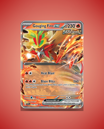 - Temporal Forces (sv5): Gouging Fire ex debuts as a powerful Fire-type Basic ex with a high HP pool and strong attacks, adding depth to the Scarlet & Violet series’ roster of Ancient subtype Pokémon.