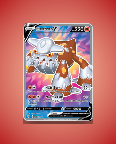 - Astral Radiance: Heatran V debuts as a powerful Fire-type Basic V with strong offense and a strategic burn effect. It adds depth to Fire-type decks and offers collectors a visually compelling Rare Ultra card. Release date is unknown.