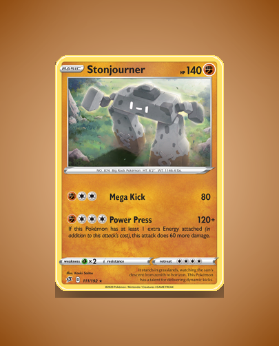 - Rebel Clash: Introduced Stonjourner as a Rare Holo Basic Fighting-type with strong kicking attacks and 140 HP, adding depth to Fighting-type decks and collectors’ portfolios alike.