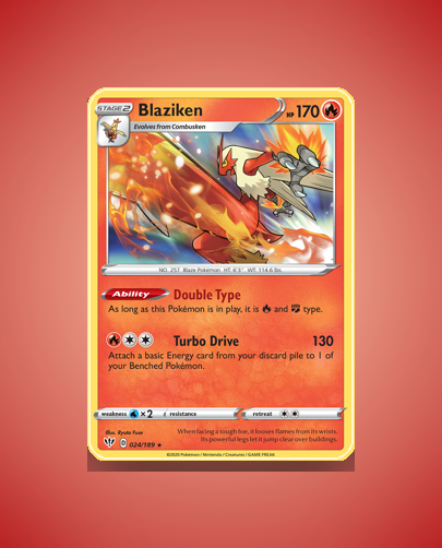 - Ability: Double Type – Blaziken is Fire and Fighting type while in play