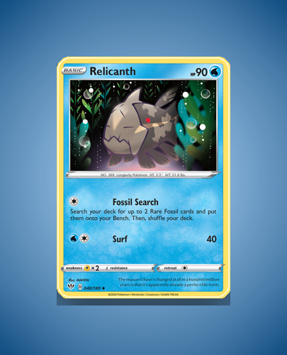 - Darkness Ablaze: This set features Relicanth as a sturdy Water-type Basic Pokémon with a unique Fossil Search ability, supporting Fossil-themed decks. The card’s moderate HP and straightforward attacks make it a solid choice for collectors interested in prehistoric Pokémon.