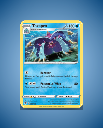 - Recover — Discard an Energy to heal all damage from Toxapex.