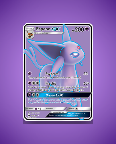 To preserve the vibrant artwork and maintain card condition, store Espeon-GX in a protective sleeve away from direct sunlight and moisture. Given its Rare Ultra rarity, handling with clean hands and using top-loaders or binders designed for high-value cards is recommended.