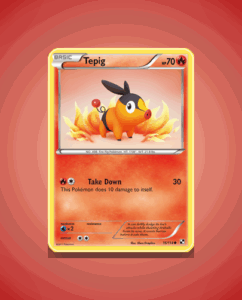 Tepig is a Common Pokémon card from the Black White set, numbered 16. It has 70 HP and features the attack Take Down. This vibrant card captures Tepig’s energetic nature with straightforward gameplay.