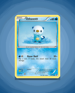 Oshawott is a common card from the Black White set, numbered 28. This lively Pokémon has 60 HP and features the attack Razor Shell. Its straightforward design makes it a staple for collectors seeking classic Black White cards.