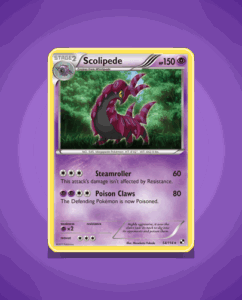Scolipede from the Black White set is a Rare card featuring 150 HP. This vibrant Pokémon showcases the attack Poison Claws. It is card number 54 in the set.