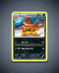 Scrafty is a Rare card from the Black White set, numbered 69. It has 90 HP and features the attack High Jump Kick. This card offers a solid presence with its straightforward design and reliable move.