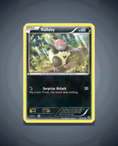 Vullaby is an Uncommon Pokémon card from the Black White set, numbered 72. It has a modest 60 HP and features the attack Surprise Attack. This card offers a straightforward addition to any collection with its distinctive design.