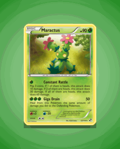 Maractus from the Black White set is an uncommon card numbered 11. It features a lively 80 HP and a single attack called Mega Drain. This card offers a straightforward yet engaging addition to any collection.