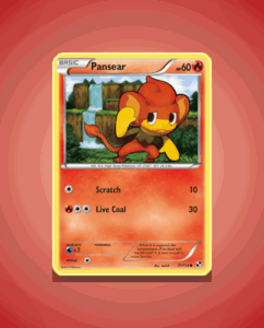 Pansear is a common card from the Black White set, numbered 21. This lively Pokémon has 60 HP and features the attack Live Coal. Its straightforward design makes it a solid addition for collectors focusing on early Black White cards.