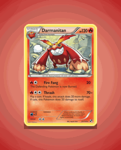 Darmanitan from the Black White set is a Rare card with 120 HP. This fiery Pokémon features the powerful attack Thrash. It holds card number 25 in the set.