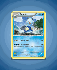 Dewott from the Black White set is an uncommon card with 90 HP. It features the sharp attack Razor Shell, showcasing its skill in battle. This card is number 29 in the set, making it a distinctive addition for collectors.
