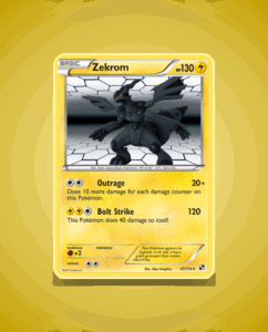 Zekrom from the Black White set is a Rare Holo card numbered 47. It boasts a solid 130 HP and features the powerful attack Bolt Strike. This striking card captures the essence of Zekrom’s electric might.