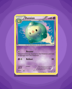 Duosion is an uncommon Pokémon from the Black White set, bearing the number 56. It has a modest 60 HP and features the attack Rollout. This card offers a straightforward addition to any collection.