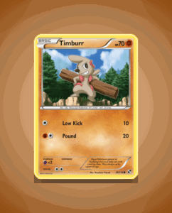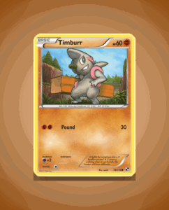 Timburr is a Common Pokémon from the Black White set, numbered 58. It has 60 HP and features the straightforward attack Pound. This card offers a simple yet sturdy presence in any collection.